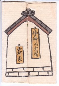 の御定宿、西村家」とあり、それを開くと三匹のネズミが内出の小槌をかついで、「オーイ親分!忘れちゃだめだよ」と言っている。