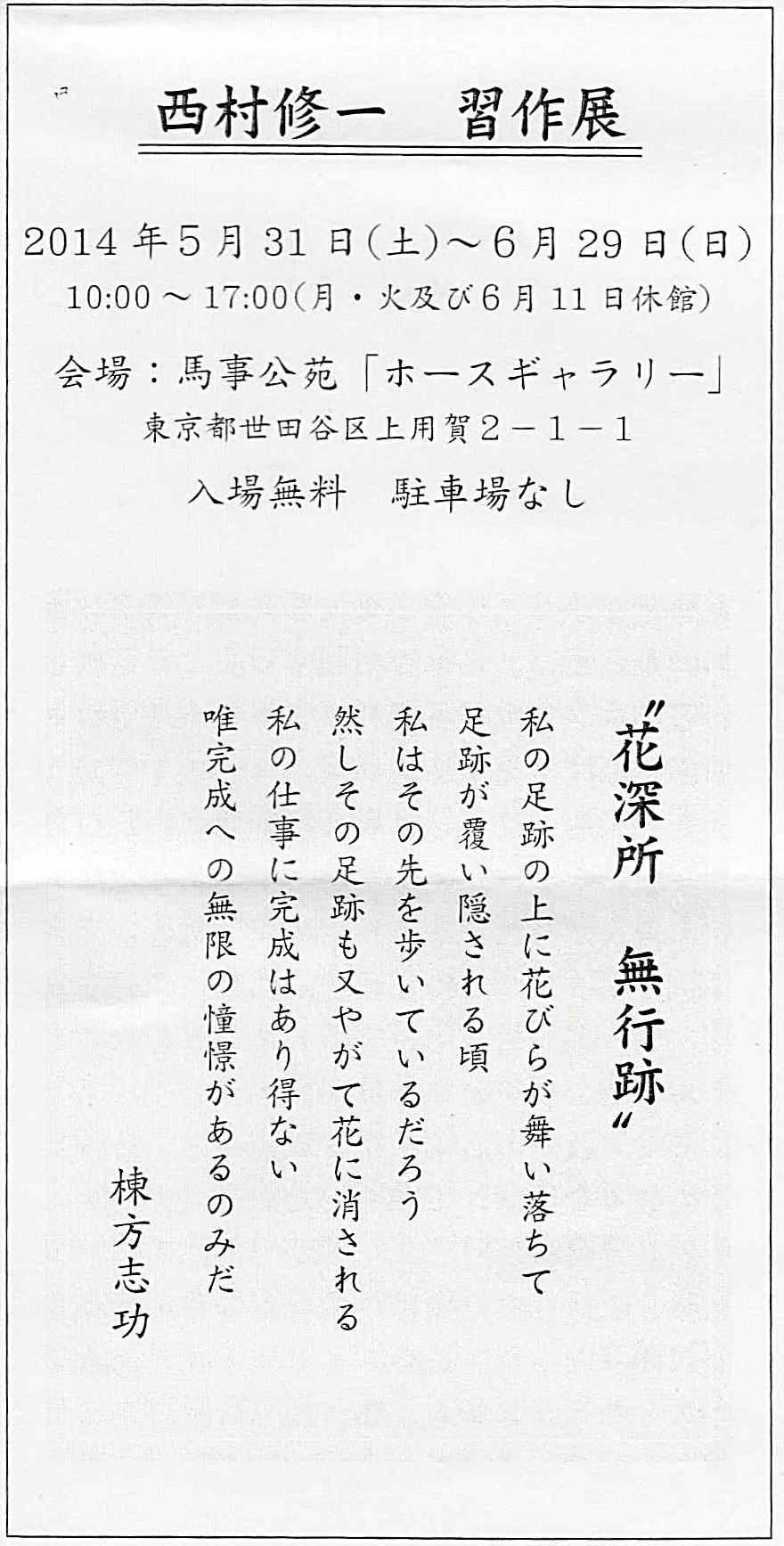大版画家と駆け出しの彫刻家の私とでは、雲泥の差はあるものの、彼の考え方に共感を覚えていた私は、6月の私の個展を「習作展」とした。