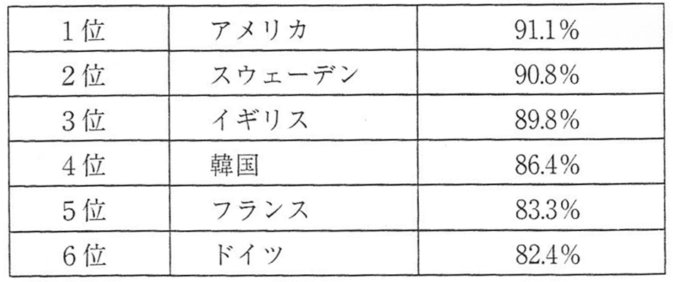 それに対し、日本は何と61.6%で、アメリカとは29.5%もの差がある。