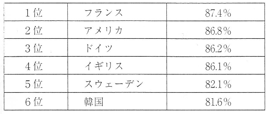に対し、日本は66.2%でフランスとは21.2%もの開きがある。