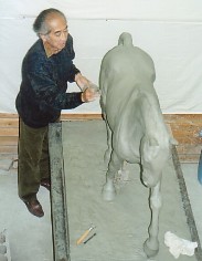3.粘土像に切り金(薄い金属板)を差し込む。後で石膏のめす型をはずし易くする為。![]() |