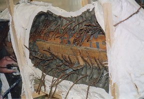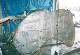 16.砂型を壊して銅像を取り出す。 頭部、尻尾等は後で溶接 ![]() | ![]() |