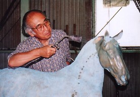 13.馬の頭、尻尾の原型を別々に切り離して 砂型をつくり、それぞれ中子 (一回り小さい砂型)を入れる ![]() | ![]() |