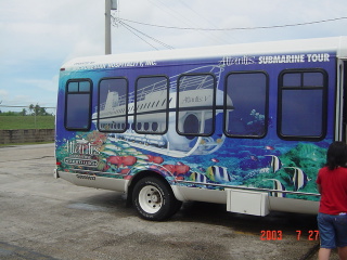 初日、出発の時間は10:00のフライトです。8:00に集合することになっているので、空港近くの駐車場を予約して7:30に到着しました。グアムまでは約3時間30分。時差が1時間あるのでその日の14:30にグアム空港に到着。入国審査を終えて外に出ると、大雨でした。スコールがよく降ると聞いていたのですぐに止むと思ったらその日はずっと降っていました。ホテルについて、ツアー会社の説明を受けて、オプショナル・ツアーの申し込みをしました。2日目に潜水艦ツアー、3日目の夜にディナーショーを予約しました。