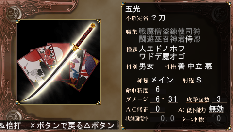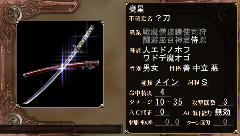 シン・・・盗賊・レベル24・黒曜石のブーメラン、かぞえ雪初霜