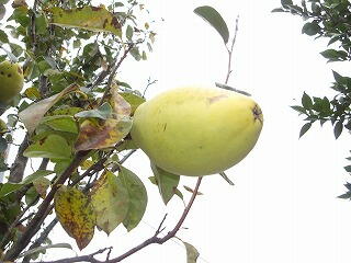 黄色に色付き始めた柚子 綺麗に大きく成っているカリン