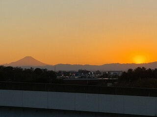 帰路に着いたのは4時15分でした。最初からライト点灯です。『宮前インター』で渋滞に遭いました。一番高いところで止まらなければなりませんでした。ここは富士山が綺麗に眺められる所、ちょうど太陽が多摩の山々の後ろ側に沈む時だったので、『紅富士』を眺めることが出来、写真も撮影できました。渋滞も良いものですね・・・。