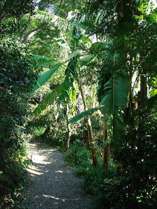 今日は10月11日で、台風の後のため強い風にあおられてこんもり茂った庭園の”ばしょう’が折れています。