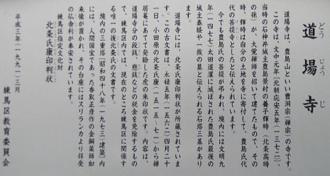 練馬区石神井台に位置する。豊島山無量院道場寺と号する。曹洞宗寺院である。