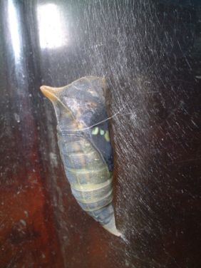 クスアオシャクが、とんでもない所(目立たない所)でさなぎになってたため、