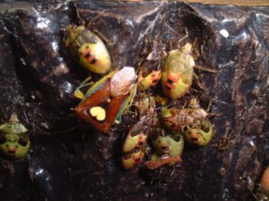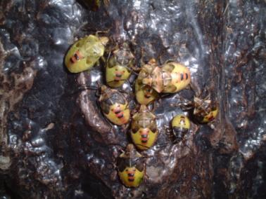 背中にハートの模様をもつカメムシ。花や実の汁を吸う。