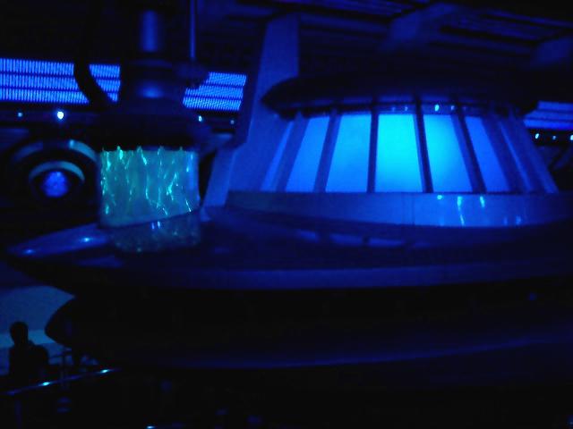↑スペース・マウンテン(スタンバイ) まもなく搭乗。青や緑の光が踊り、とても幻想的だ。