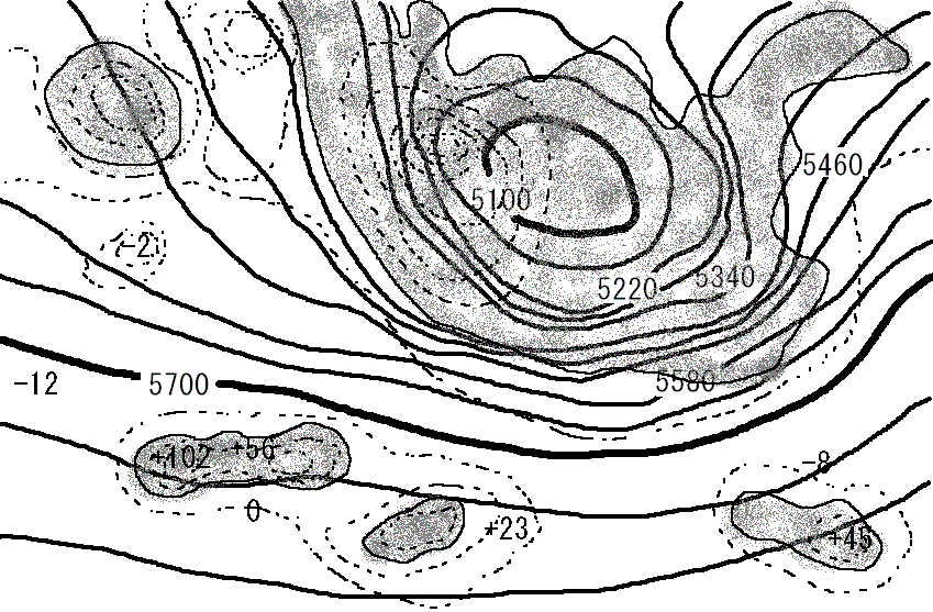 ペイントで適当に描いた、上空約5500メートルの天気図サンプルです。