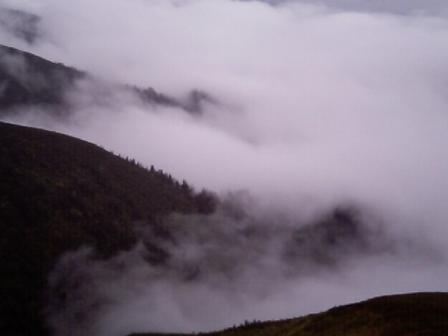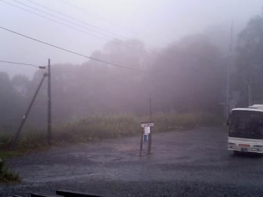 強い雨が降っている。ときおり濃い霧に包まれる。