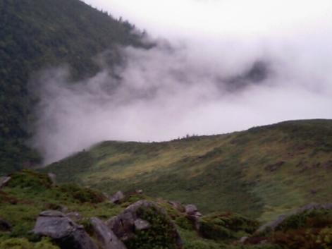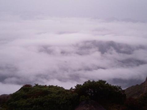 登山としては、あいにくの天気になったが、壮大な雲海を見ることができた。尚、雲の上にでても 雨が降り続いており、複数の層の雲から雨が落ちてることが伺えた。