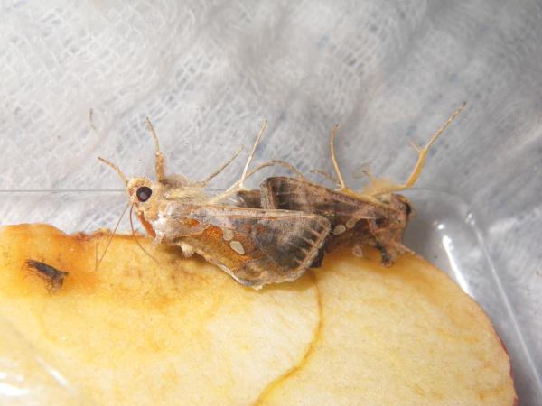 ヤガの仲間のお食事(リンゴからの吸蜜)