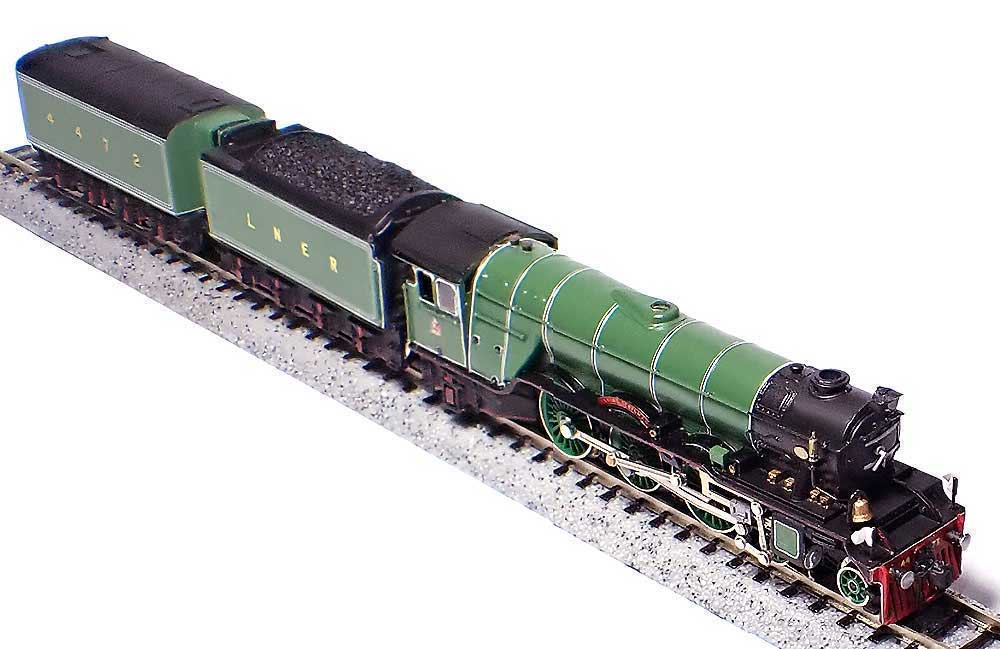 イギリスのA-3 4472は現在、イギリス国鉄時代の60103として動態保存されています。1963年に廃車、解体される予定でしたが、実業家で鉄道愛好家であるアラン・ペグラー氏に売却され、ドンカスター工場で、イギリス国鉄時代のスタイルから、完全にLNER時代のスタイルに修復されました。蒸気機関車の給水施設がなくなっていく中、1966年にコリドーテンダーを購入して補助水タンクへ改造し、ダブルテンダーとして使用し、長距離運転が可能になりました。輸出促進を目的として、1969年に9輌の展示客車(プルマン車他)と共に、アメリカとカナダに輸出されました。アメリカで運行するために、カウキャチャー、自動連結器、ベル、アメリカ式汽笛、ヘッドライト等が取り付けられ、1972年までアメリカ各地を走りました。が、このアメリカでのツアーでペグラー氏は膨大な負債を抱えることとなり、ペグラー氏は破産手続きを行い、本機はサンフランシスコのシャープ工場に一時的に保管されました。1973年に解体されることになり、解体寸前に、実業家のウィリアム・マッカルパイン氏に買い取られ、無事にイギリスに帰還させることができました。