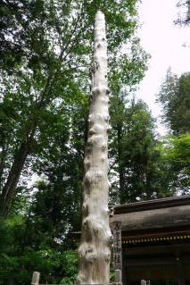 御柱を見学。春宮近くの「万治の石仏」ではその姿に圧倒されつつ、