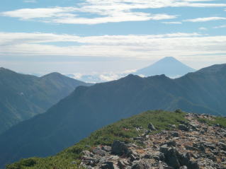 手前は富士山の次に高い北岳