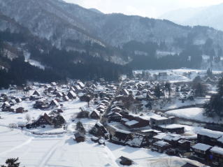 世界遺産の白川郷。茅葺屋根の合掌造りの家屋は