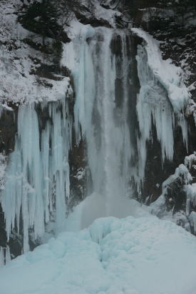 高さ64mの滝は、この時期氷柱となり圧巻の景色!