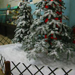 ■人が通行できる場所に面して装飾する場合 人工雪の敷き詰めてある場所には入れないようにしてください。 注意点 人工雪のついた床の上を歩きますと大変滑りやすく危険です。お子様には特に注意お願いいたします。また、『人工雪を使用しています。お手を触れないで下さい』といったような札をつけて置くことをお勧めします。また人の動線とディスプレイとを柵などで分離します。 |