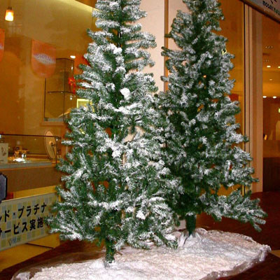 | ■人工降雪 人工雪で装飾したクリスマスツリーやその他のクリスマスのディスプレイに合わせてその上にスノーマシン(降雪機)を配置して人工降雪で演出してはいかがでしょうか。人工雪ディスプレイの静的な装飾と降雪時の動的な演出でよりロマンチックで注目されるクリスマスを演出できることと思います。また照明効果なども加えると更に・・・。ハイシーズンにはお早めにご予約ください。 詳しくはアクアスノーのページへ |