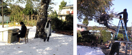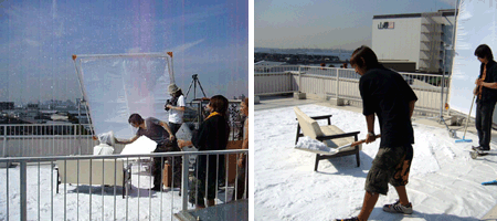 | 場所:スタジオ 秋 屋外1日 アーティストのプロモーションビデオ 雪の中でのシーン 地面シート養生+アクアスノー降雪。 都内スタジオ屋上  |