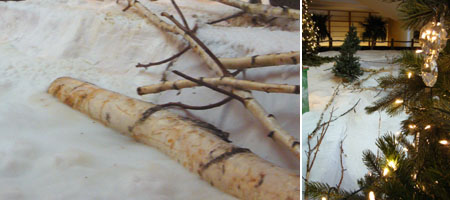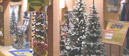 場所:スポーツ店ショーウインドウ 秋〜冬 屋内【ショッピングモール】 ツリーを使用した冬景色例 要メンテナンス。 横浜市ショッピングモール内  |