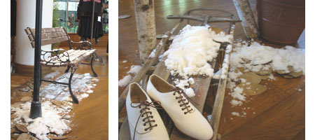 場所:パーティー会場エントランス 夏季 屋外1日間 会場入口付近と人工植物の雪化粧。 床:シート養生の上人工雪敷設。 東京都千代田区  |