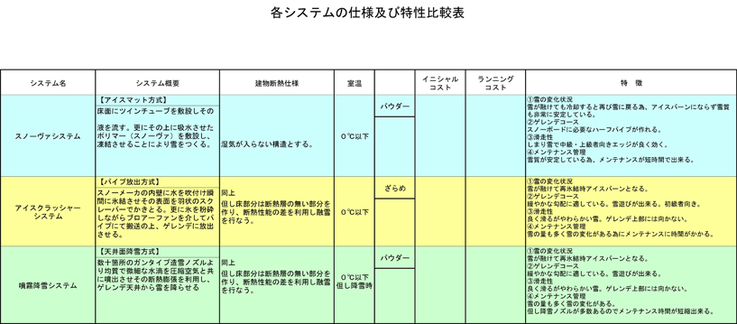 3種類ある人工雪の製造法 を自由自在に組み合わせ 独自のゲレンデ空間を演出。 低コスト・省エネ設計。 |