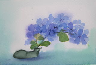 今までに何度となく描いてきたルリマツリなのに、色を置く段になって迷いが生じました。「瑠璃色」辞書