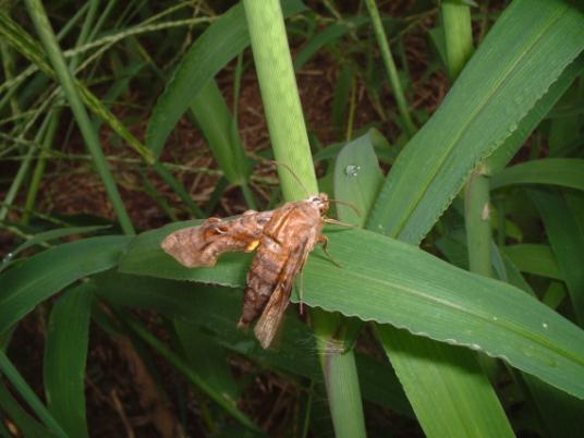 スズメガの仲間 スズメガの中でも、ホウジャク亜科と思われる。 飛び方がすばやく、ハチと見間違えやすい。