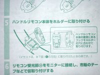 ナビのセットにハンドルリモコンなるものが入っていました。これを操作して音声入力をしたり、ジョグダイヤルでコマンドを入力したりできるとのこと。左写真のような代物で、取り付け説明書(右写真)によれば、その名の通りハンドルのグリップ内側に縛り付けろと書かれています。しかし、ハンドルグリップに異物(?)が着いているのは、いかがなものかと...。といって、そのまま捨ててしまうのは勿体ないような気もします。そこで、これをつけるのに適当な場所はないかと探してみると、ちょうど良くウィンカのレバーがあるじゃないですか。じゃあ、ここに着けようということになりました。