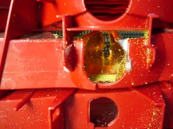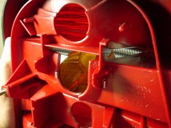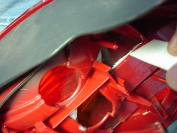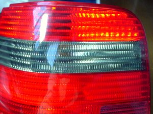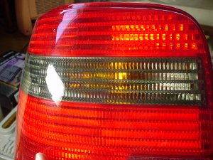 ウィンカー部分を拡大すると、こんな感じです。実は、バックランプだけを加工した状態で一旦車に装着して2〜3週間使ったのですが、このウィンカーのオレンジが透けるのが、どうしても気になってまた外して加工することにしました。