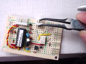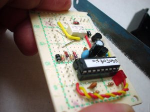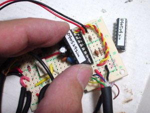 それからICを、たぁぼぉさんに別送していただいた最新バージョンのものに差し替えます。先日発見されたバグが修正してあるとのことで、その評価も行う必要があります。ICはソケットをかえして実装して下さっているので、バージョンアップは、単純に抜き差しだけでOKです。