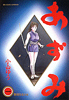 時は戦国末期、関が原の合戦は東軍・徳川家康の勝利に終わったが、以前豊臣派の旧勢力が残り、また巷では敗戦や大名の取り潰しによってあぶれた浪人たちが徒党を組み「野武せり」と化して村、町を荒らすという秩序がまだ、完全に整わない世の中であった。 敗残した豊臣方の兵の多くは秀頼が成人するのを待ち再度蜂起する夢を持っていたが、 徳川陣営はその芽を ことごとくつみとるべく "計画"を遂行した。 家康のブレーンともいえる高僧 南光坊天海は、 「世の中から権力奪取の夢を見る者を取り除かない限り戦が終わることはない」 と考え、 武術の達人であり戦乱により何よりも尊い者達を 失っていた爺(小幡月斎) に、天下泰平のため、不穏な動きと勢力を 事前に摘み取る−「枝打ち」をする、武術集団を育てることを依頼する。 その目的のために選ばれし10名の子供達を10年かけて育て上げた。 中でも最高の剣の使い手であり、唯一の女性剣士・・・。 それが 「あずみ」である。 厳しい修行を終え、女としてではなく「剣士」としての誇りを胸に広い世界に旅立ち、多くの人達と出会い そして別れ。 「過酷な使命」と「優しさ」の狭間での葛藤に 悩み、涙を流す。 「あずみ」の成長を描く。「女」へ・・・。 |