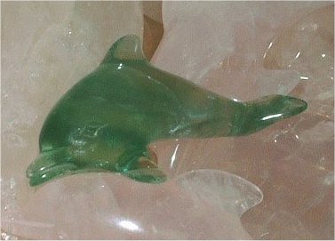 透明感のあるグリーン一色のフローライトのイルカは、珍しいのに、上手く撮影できていません。