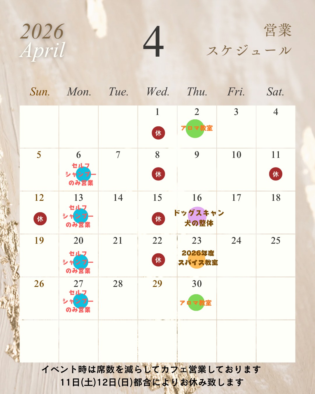 | お知らせ 最新の情報はインスタグラムでご確認ください ドッグスポーツ参戦のため4月11日・12日を休みとし、18日・19日を平常営業とさせていただきます。 令和8年1月より営業の形が少し変わりいます。 定休日は毎週水曜日と第3土曜日と次の日曜日(但し変更するときがあります) 毎週月曜日(祝日は除く)はセルフウォッシュのみの営業となります。 申し訳ありませんが、5名様以上のご来店をお断りさせていただいております。 お店も開店して20年を超え、最近たくさんの方々においでいただき大変感謝しております。しかし、店主も高齢となり、厨房も娘一人が対応させていただいておりますので、このような対応とさせていただきます。 営業時間について 平日(月曜日)は 10時〜17時セルフウォッシュ 平日(火〜金曜日)は 11時〜16時ランチタイム 16時〜17時ドリンクタイム 10時〜17時セルフウォッシュ 土日祝日は 11時〜16時ランチタイム 16時〜19時ドリンクタイム 10時〜19時セルフウォッシュ となります。 献血に協力して下さるわんちゃん・ネコちゃん募集 我が家がお世話になっている獣医さんの1つ「吹田のどんぐり動物病院」で献血に協力して下さるわんちゃん・ネコちゃんを募集されています。詳しくはお店に置いてあるパンフをご覧ください。 |