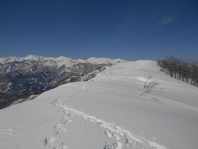 2時間少々で稜線に出る。 北アルプス、頸城、360度のパノラマ |