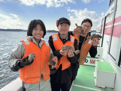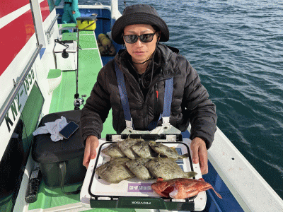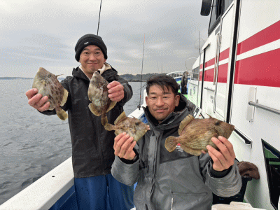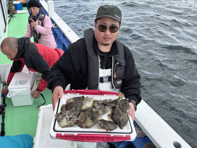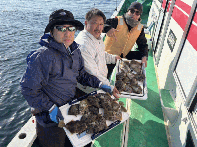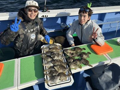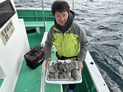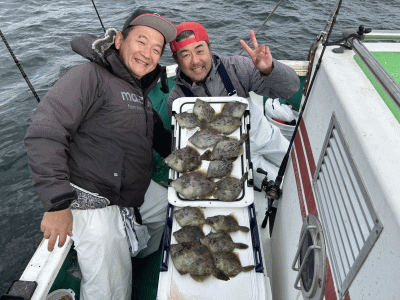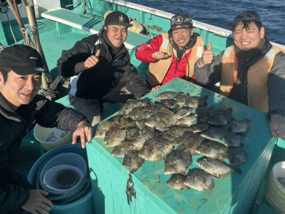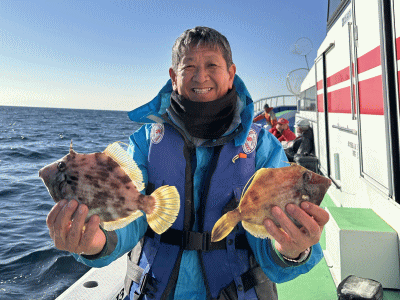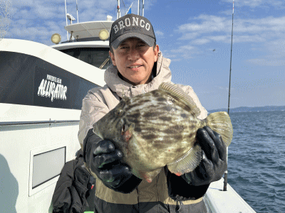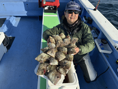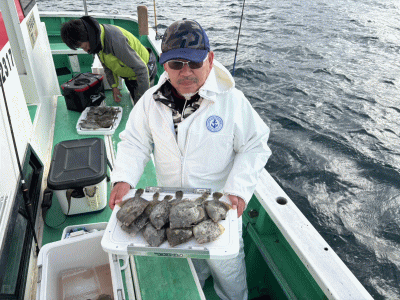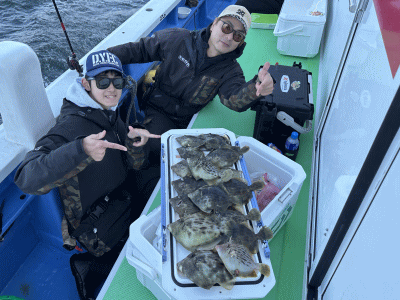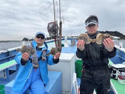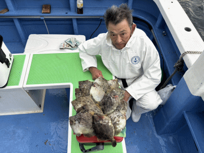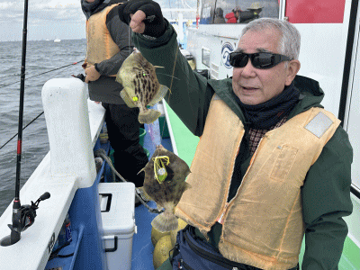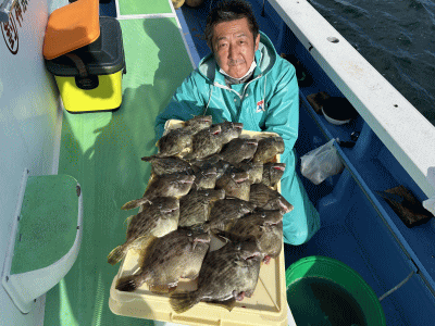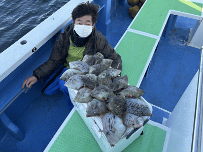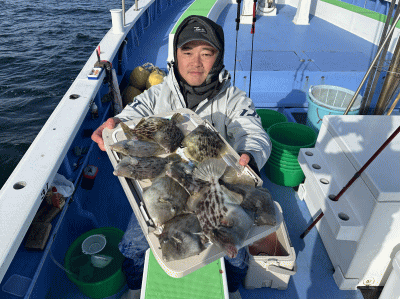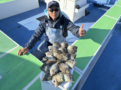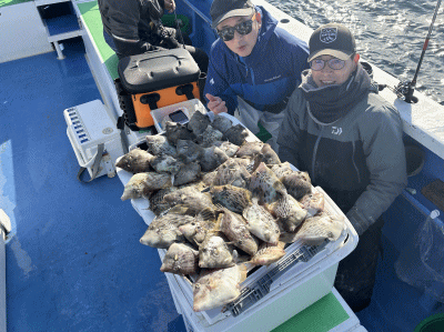 大型3号・8号で出船しました。剱崎・下浦沖10〜30m前後を攻めました。1日を通してポツポツと釣れました!時折連チャンGETする場面もあり盛り上がりました!良型カワハギも交じり楽しめました!