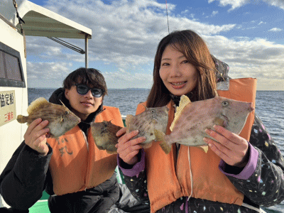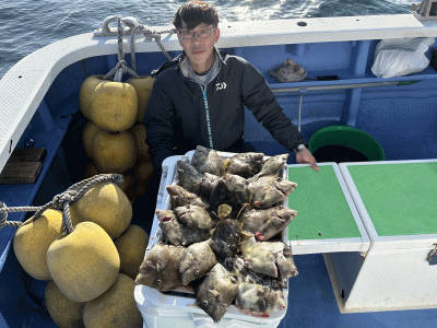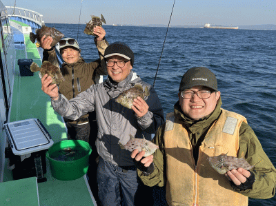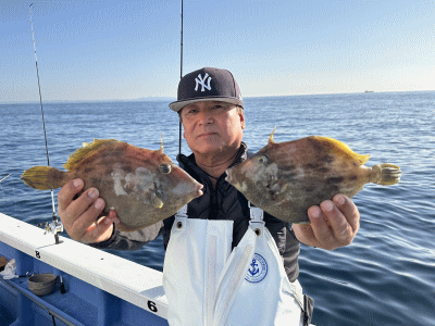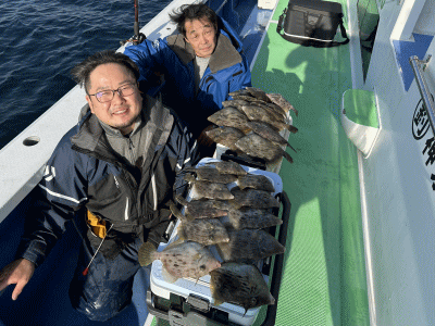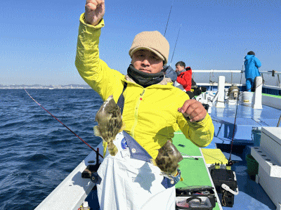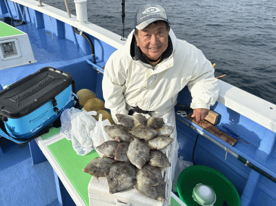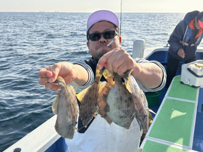 大型3号で出船しました。剱崎沖を中心に10〜30m前後を攻めました。1日を通してポツポツと釣れ、良型多数交じり楽しめました!時折ダブル!連チャンGET等あり盛り上がりました!南西風強まり12時頃早上がりしました。