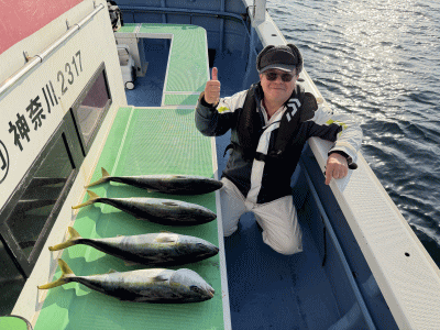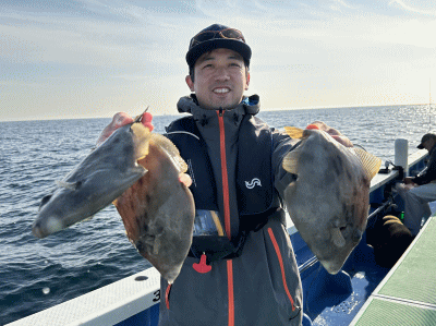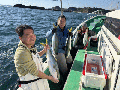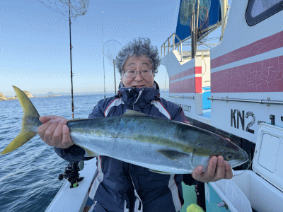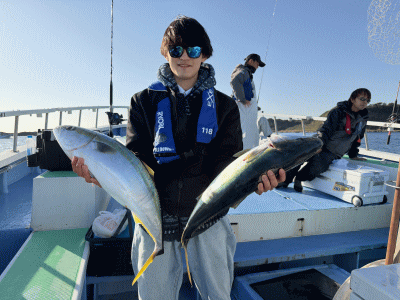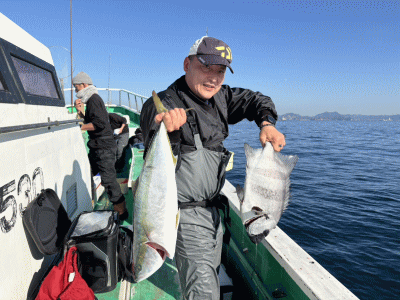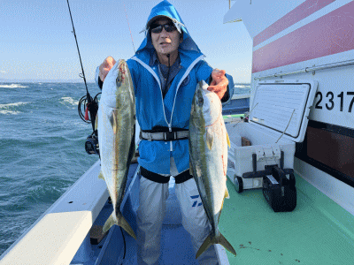 大型2隻で出船しました。ワラサは朝からポツポツ喰いでアタリが良いタイミングで同時ヒットなどあり盛り上がりました。トップは4本と好調でした!明日も期待!!
