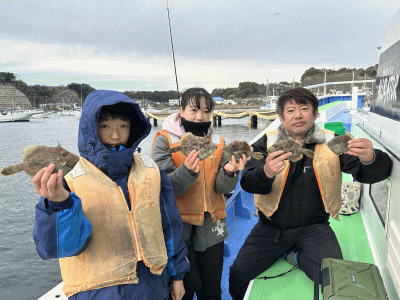 大型3号3名様で出船しました。剱崎沖15〜35m前後を攻めました。1日を通してポツポツと釣れ、アタリの良い時間帯にはダブル!連チャンGET等あり盛り上がりました!良型カワハギも多数交り楽しめました!