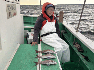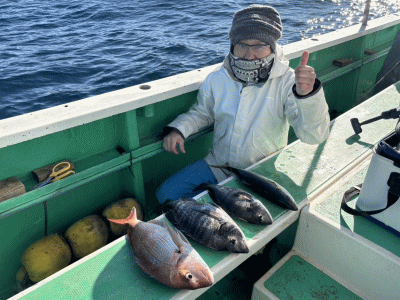 朝からマダイの顔を見れ、その後もポツポツとアタリました!トップは3枚とボウズなく皆様GET!好調でした!!
