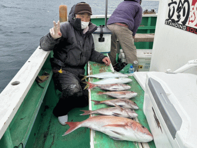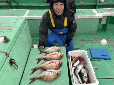 朝からマダイの顔を見れ、その後も喰いよくアタリ活発でした!トップは7枚とボウズなく皆様GET!好調でした!!
