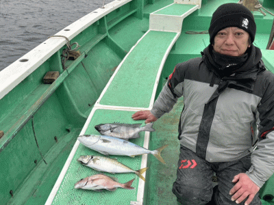 朝からマダイの顔を見た程度でした。外道にワラサなども釣れ、お土産GET!