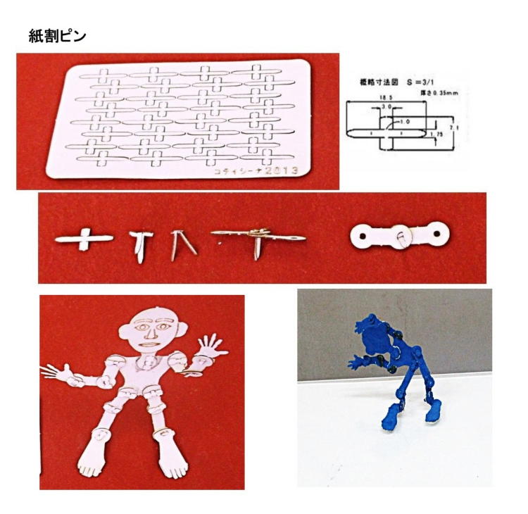 | 紙製割ピンとは紙で作った割ピンを紙製割ピンとします。 紙製割ピンの特徴 1,シンプルである事 2,極端に小さく出来る事 3,指で着脱が出来、工具等の必要が無い事 4,カードタイプの中に収納されているので悲惨等は無い事 5,取り扱い上の安全性が高い事 紙細工の紙の材質はバルカナイズドファイバーが最適です。 製品仕様書 割ピン寸法(mm):18.5×7.1×0.35 内臓数 :32個 外形カード寸法(mm):91×55×0.35 関連情報はNOTEにも記載が有ります。 |
