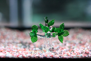 ピントはガラス製品の葉の部分に合わせ、部分測光にて撮影。。