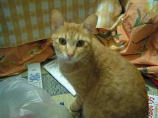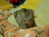 たどん進一です。(長男) ママが大好きなマザコンネコです。 のんびりやの好奇心旺盛なのにゃ。 2001年11月2日お布団の中で生まれました。 |